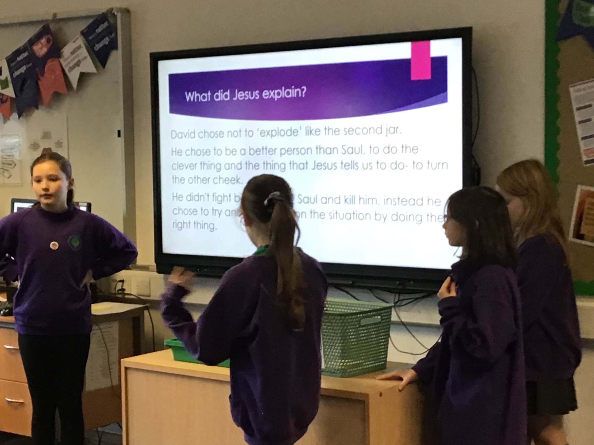 They have become very keen to lead worships so they have had meetings to discuss different themes and how it can be delivered to then in small groups deliver a worship to the school house groups. This year they have delivered a worship about David and Saul, where they used a science experiment of vinegar and bicarbonate of soda to model the idea of David not exploding and keeping control of his emotions. They have also delivered a worship about Feeding of the 5000, where they read a story and encouraged the rest of the school to join in with different actions for parts of the story.