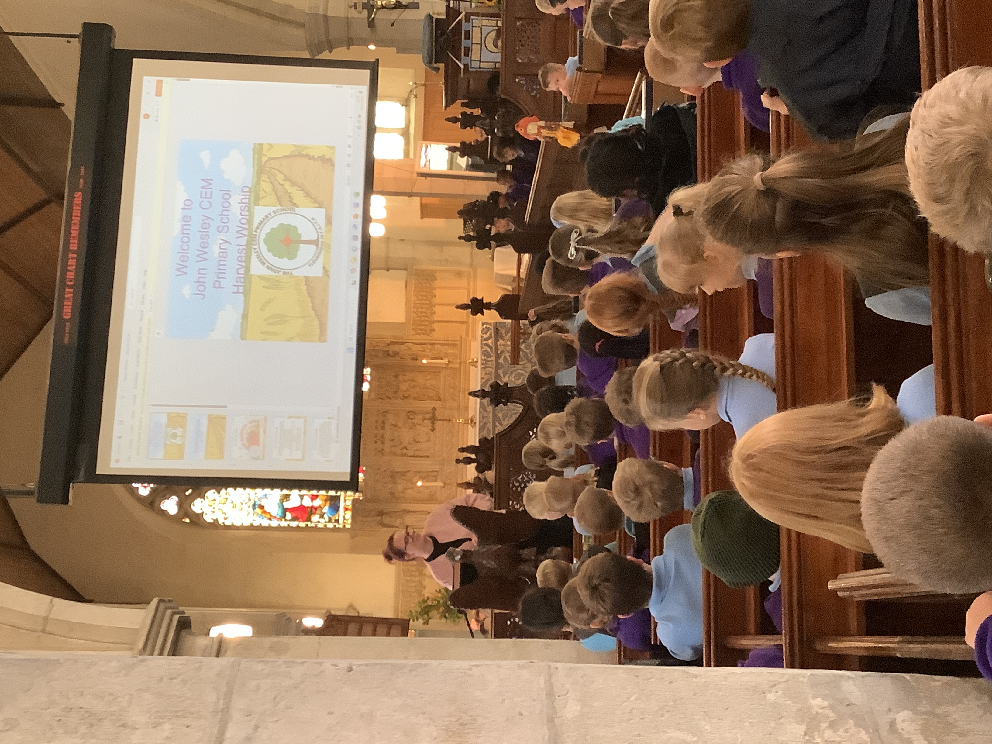 Years 2 to 6 walked over to St. Mary's church to take part in the Harvest festival worship. Children took an offering of food which was used by the church to support families in the local community, in need. House captains shared harvest readings and Year 3 shared harvest prayers.